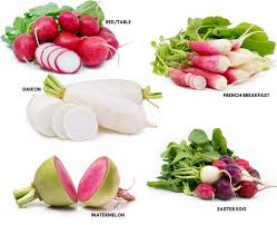Radish is a root vegetable known for its crisp texture and sharp, peppery flavor. It comes in various colors, including red, white, pink, and purple, with white flesh inside. Radishes grow underground as part of a bulbous root and are commonly eaten raw in salads, pickled, or cooked in dishes.